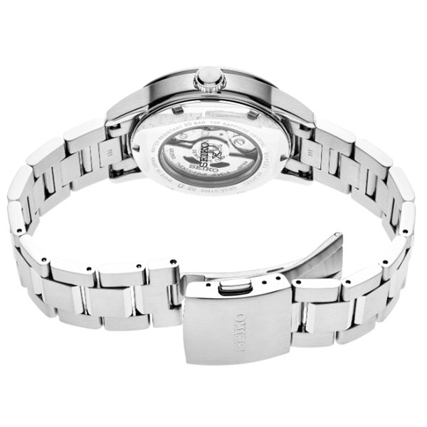 Prospex Alpinist. Designed for those who treat life as the ultimate adventure, the Seiko Prospex line meets every challenge with technological excellence and style. This extraordinary timepiece re-interprets the watch that launched a rich legacy of sports watch excellence. Styled to fit contemporary tastes while evoking a vintage feel, this exceptional watch is as smooth and refined as the prized 1959 version, but far more powerful. The blue dial includes the original’s mountain-shaped markers at 12, 6 and 9, ensuring legibility while referring to its mountaineering inspiration, as well as LumiBrite hands and markers, a date calendar and a curved sapphire crystal with anti-reflective coating on the inner surface. The screwdown see-through caseback provides a view of the 24-jewel automatic movement, which beats at a frequency of 21,600 vibrations per hour, with a power reserve of approximately 70 hours, and offers manual winding capability. In stainless steel, with tri-fold push button release clasp. 20 bar, 200M Water Resistant.